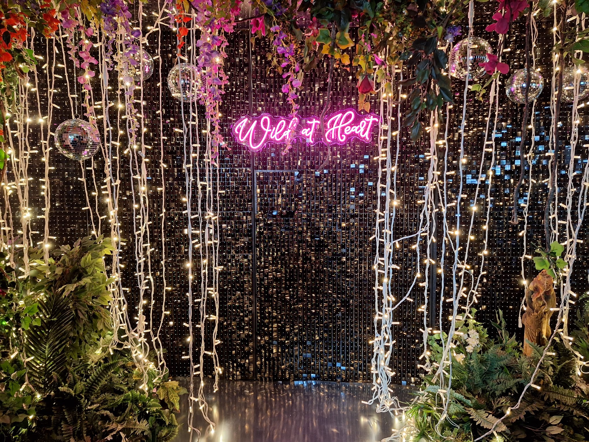 We can add bespoke branding and neon signs, perfect for corporate events and awards celebrations. Why not add florals to the wall for an aesthetic effect, combining natural beauty with the sparkle of disco balls?