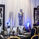 Bring on the glamour of Hollywood and the Oscars with our Film Reel Table Centres, an iconic Centrepiece of the Silver screen! Combine with an array of other Hollywood Themed Table Centres and Hollywood Theming and Props to create the ultimate Red-Carpet Style event. We have an extensive range of film props to assist with your Hollywood Styling including a glitzy entrance, large Oscar statues and film-based silhouettes!
