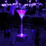 These stunning Martini Vase table centres look great as a great awards dinner centrepiece gala dinner table centre as well as a great addition to any James Bond Theme Event. Light Up Martini Vase Centrepieces make stunning centrepieces all year round lit in any colour.