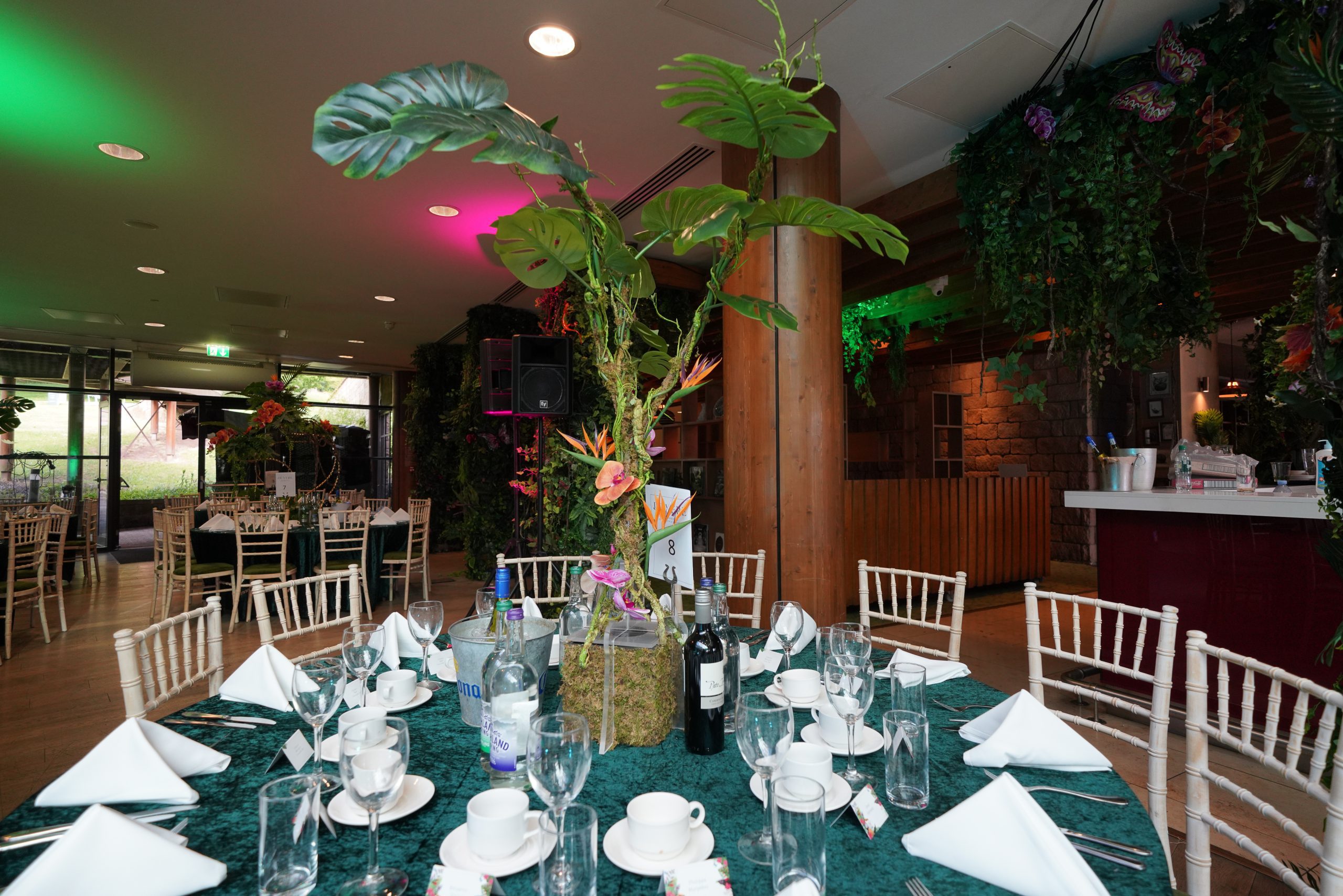 Transform your event into a lush rainforest oasis with our Rainforest Trio Swirl Table Centre.